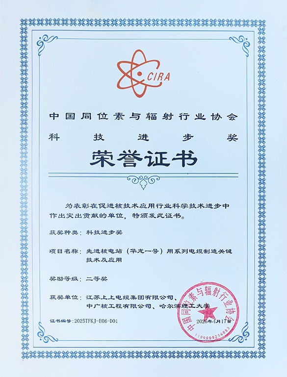 近日,由江蘇上上電纜集團(tuán)攜手中廣核工程有限公司、哈爾濱理工大學(xué)聯(lián)合攻關(guān)的“先進(jìn)核電站(華龍一號(hào))用系列電纜制造關(guān)鍵技術(shù)及應(yīng)用”項(xiàng)目,成功斬獲2025年度中國(guó)同位素與輻射行業(yè)協(xié)會(huì)科學(xué)技術(shù)二等獎(jiǎng)。該項(xiàng)目一舉攻克了我國(guó)自主三代核電站“華龍一號(hào)”用系列電纜的多項(xiàng)關(guān)鍵技術(shù)難題,為推動(dòng)我國(guó)核級(jí)電纜技術(shù)進(jìn)步注入了強(qiáng)勁動(dòng)力。